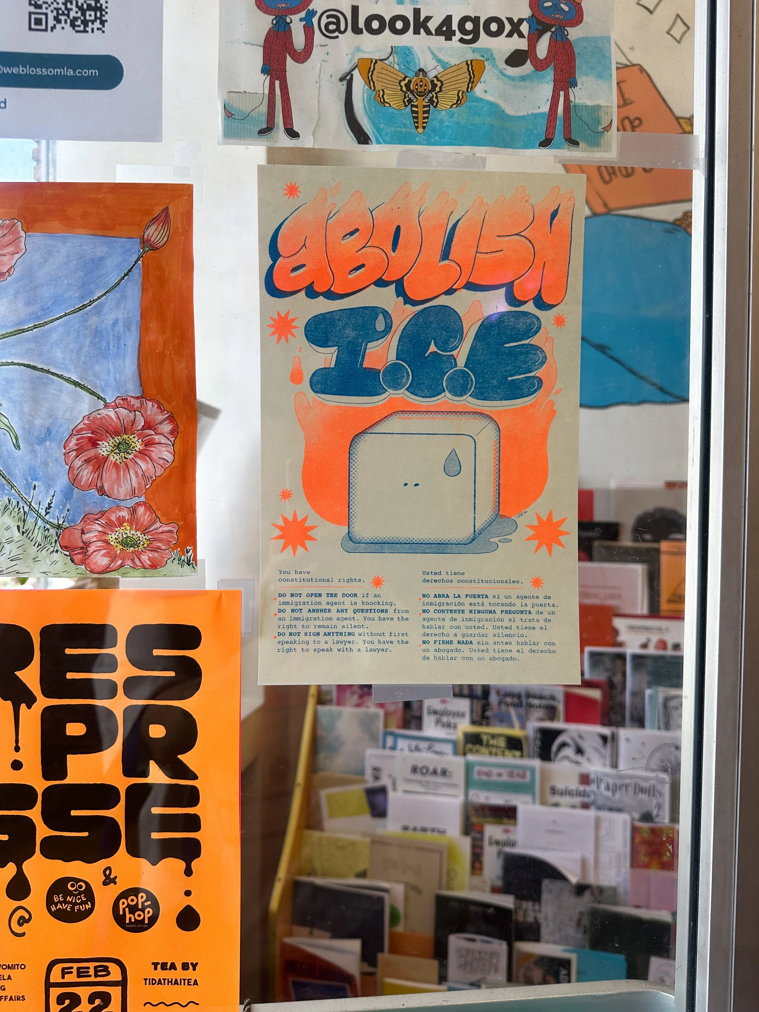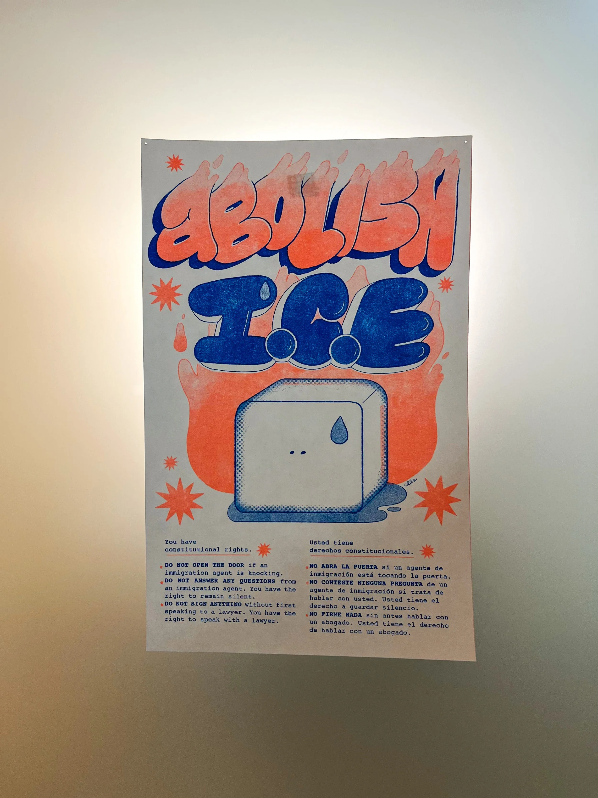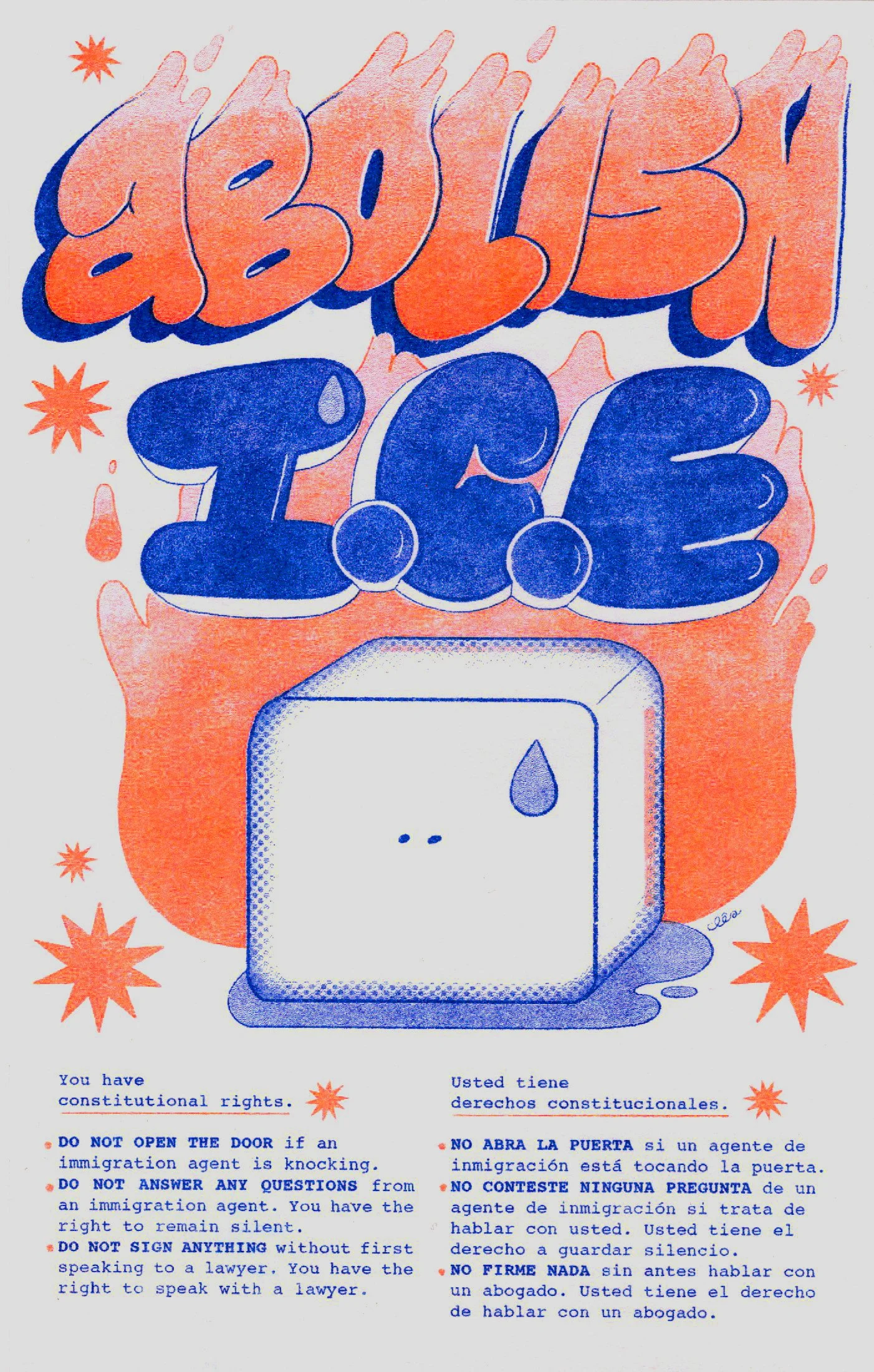 A print with detailing information in English and Spanish on what to do if confronted by an I.C.E. agent.