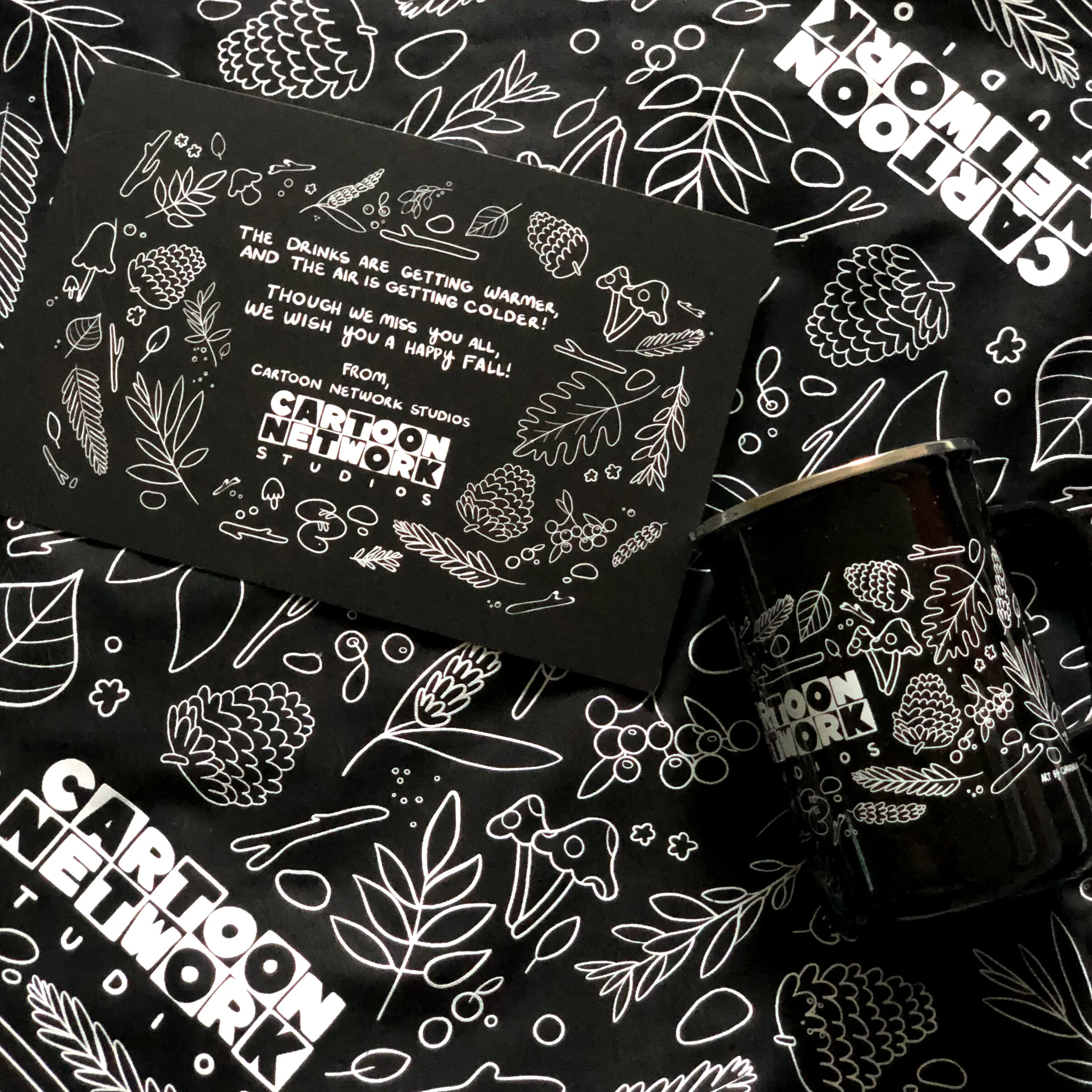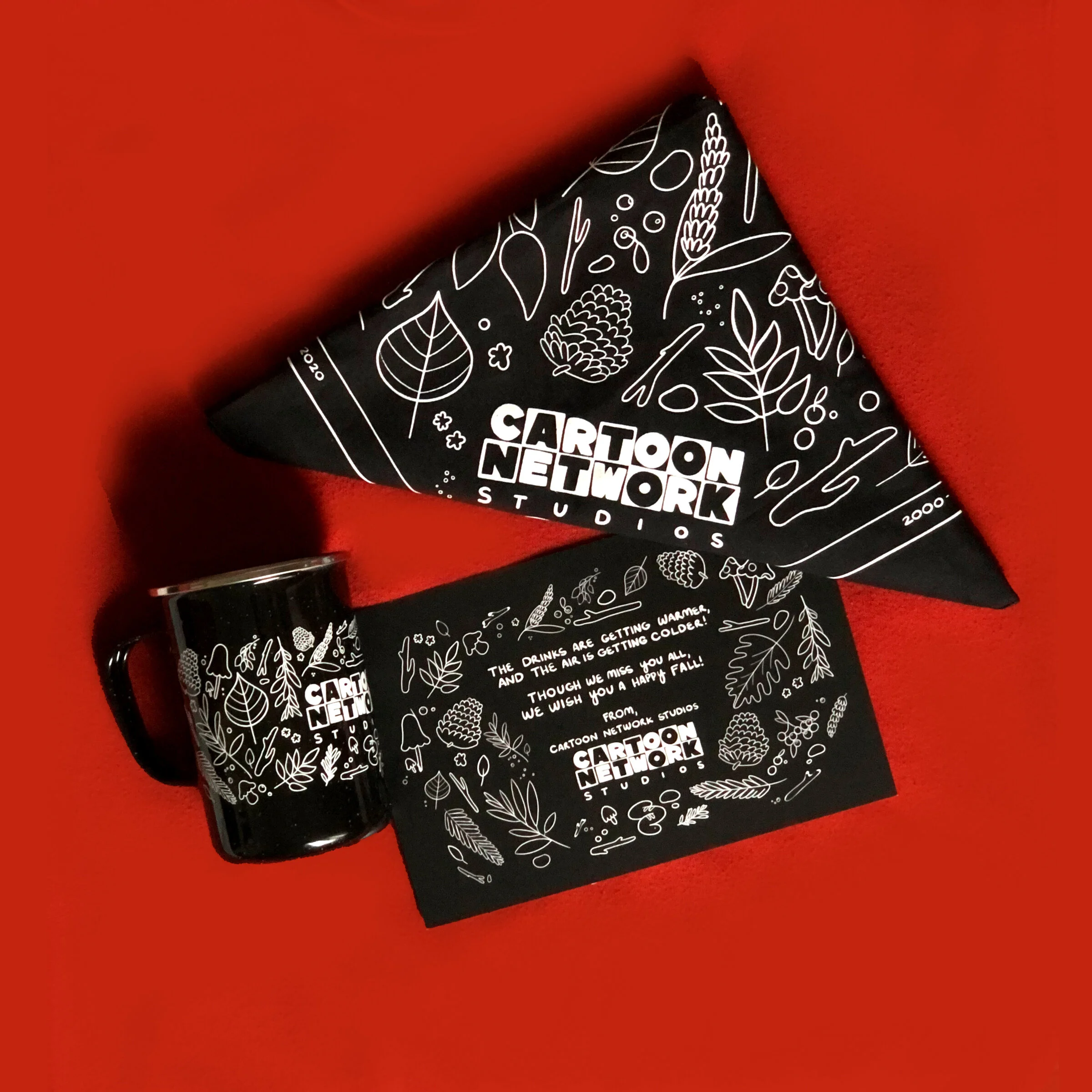 Cartoon Network Studios 2020 company gift. Employees received a bandana and an enamel mug to keep them staying cozy for the Fall!